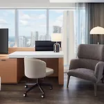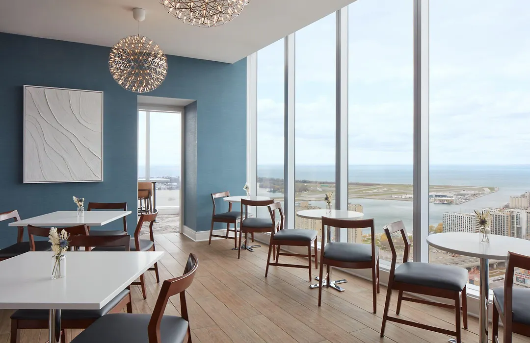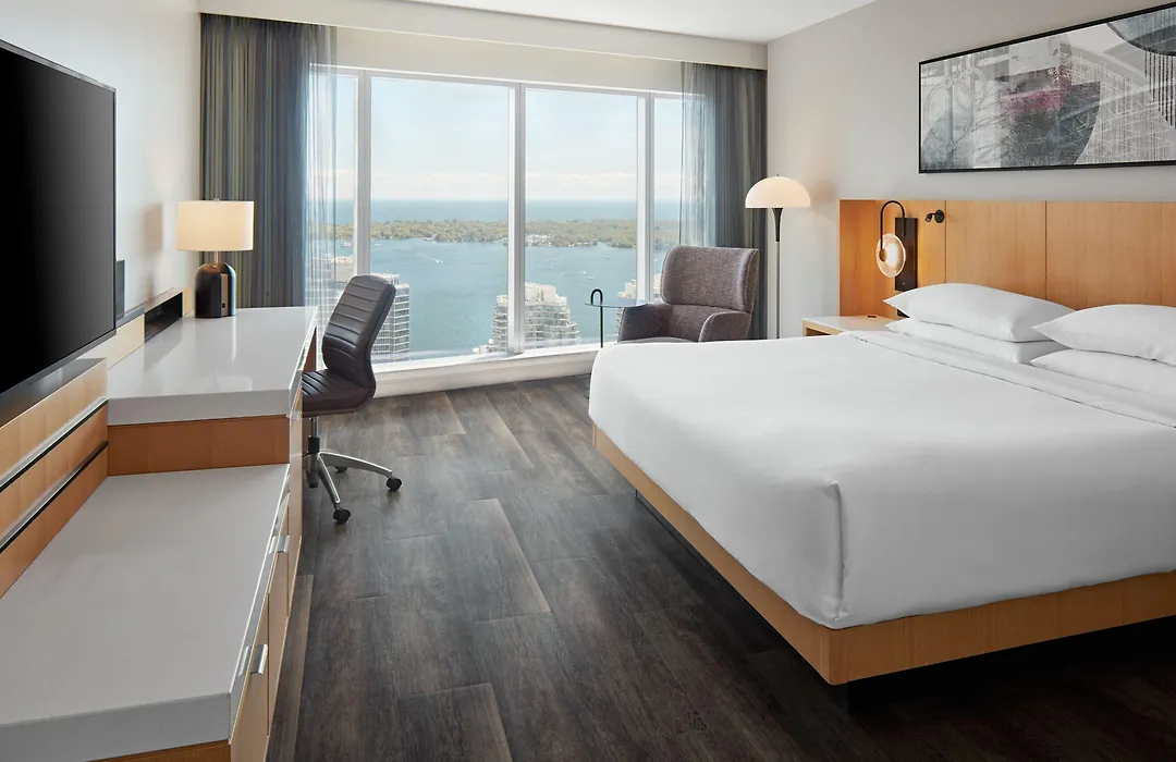 Neben einer Sitzecke sind die Zimmer im Delta Hotels By Marriott Toronto mit einem Flachbildfernseher mit Satellitenkanälen und einem Smart-TV ausgestattet. Zu den Annehmlichkeiten der Badezimmer gehören eine begehbare Dusche und eine getrennte Toilette sowie ein Haartrockner und Handtücher. Die Zimmer kommen mit Blick auf den See.